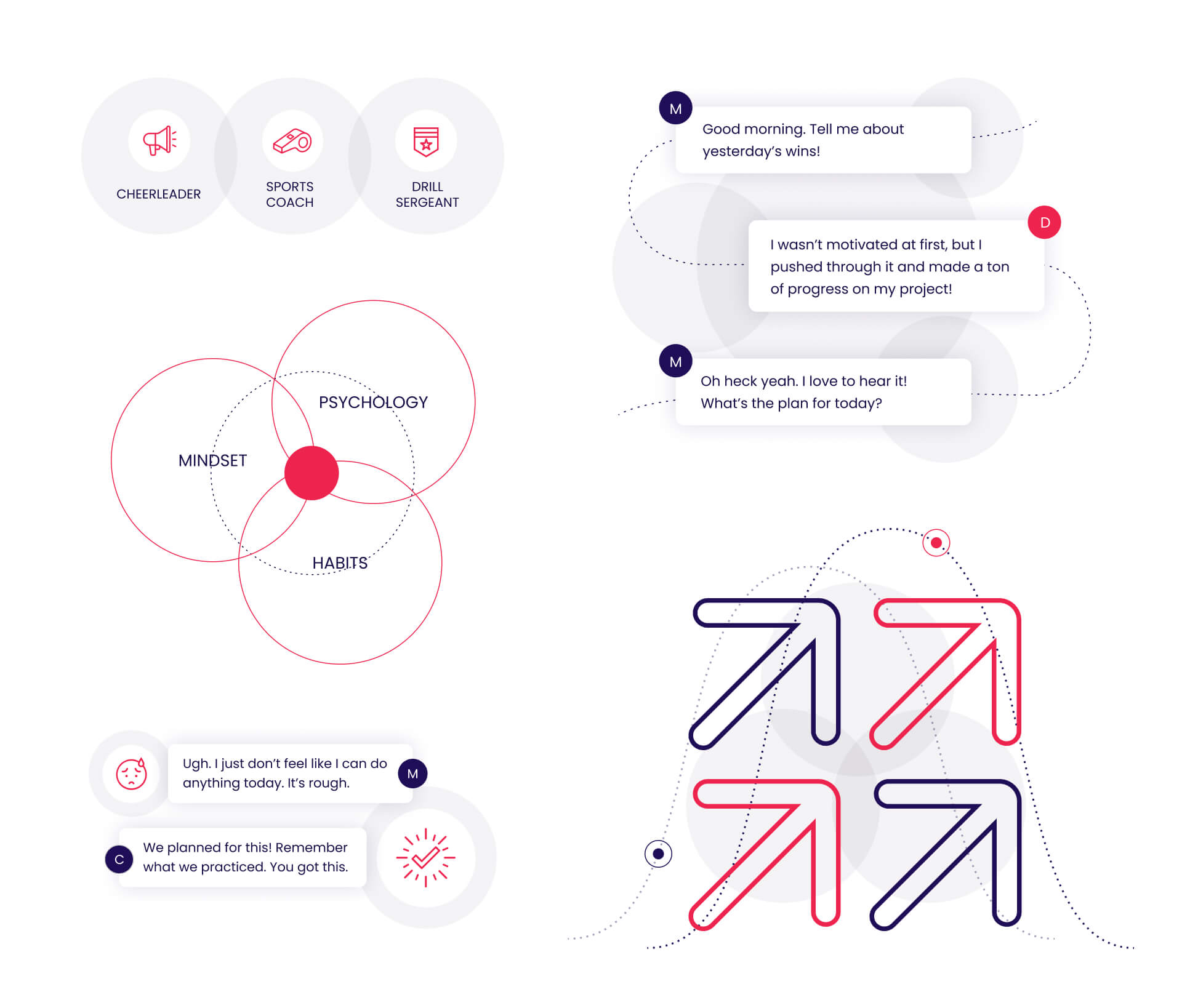 I also created a suite of custom illustrations to help illustrate the benefits of accountability coaching and break up the information into digestible sections.